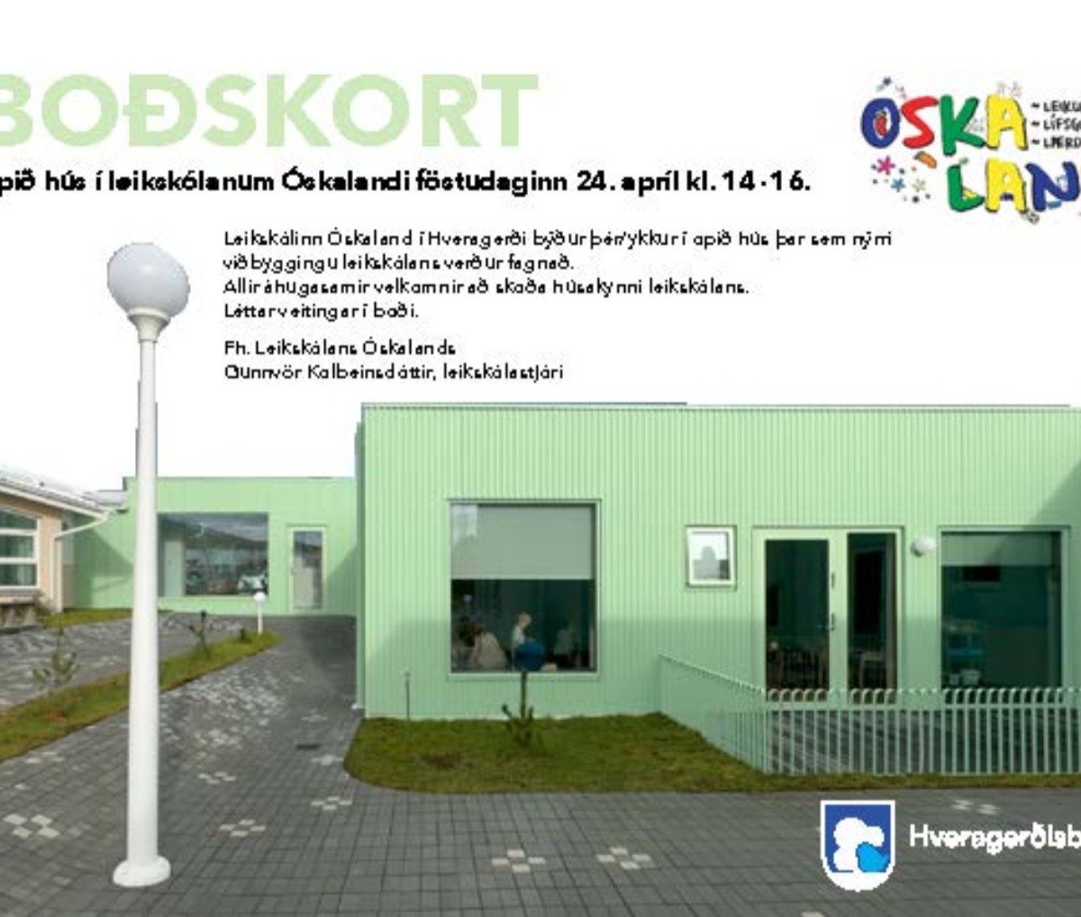 Leikskólinn Óskaland í Hveragerði býður þér/ykkur í opið hús þar sem nýrri viðbyggingu leikskólans verður fagnað.